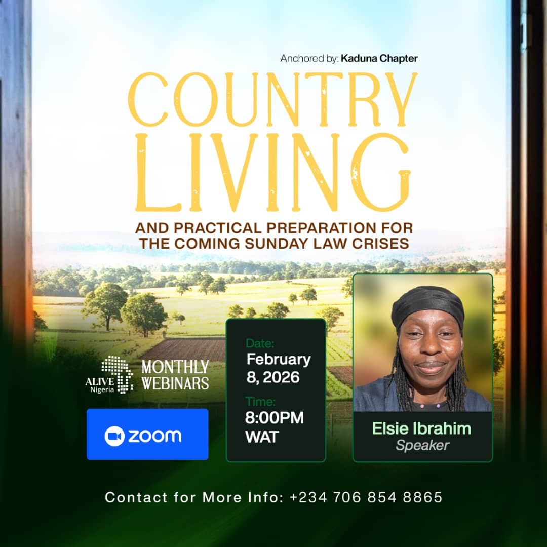 Join us for an eye-opening webinar on Country Living and Practical Preparation anchored by Kaduna Chapter of ALIVE-Nigeria.